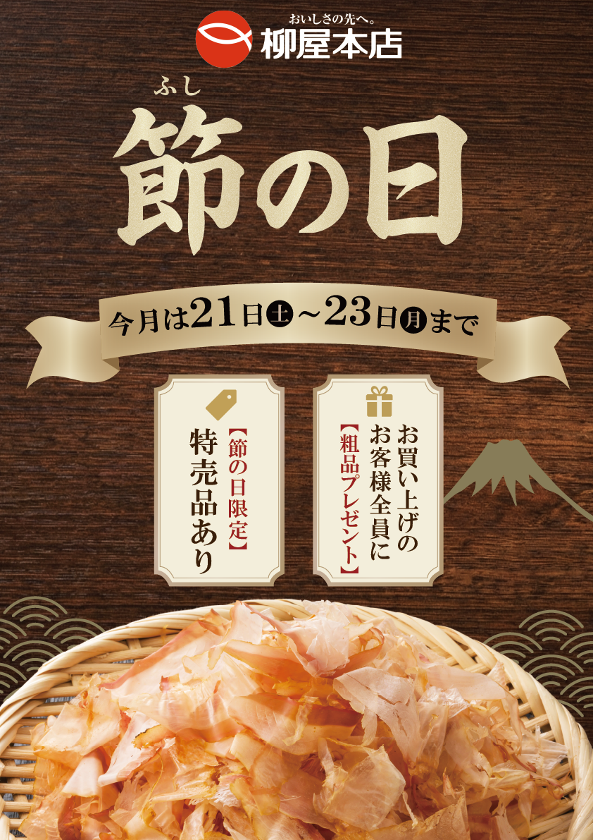 毎月24日に開催しております「節の日キャンペーン」ですが、2月は24日が定休日のため、開催日を変更し、下記の期間で実施いたします。